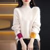Suéter de vison 2024 outono e inverno novo feminino meia gola alta curto solto grosso cor-bloco suéter de caxemira base suéter