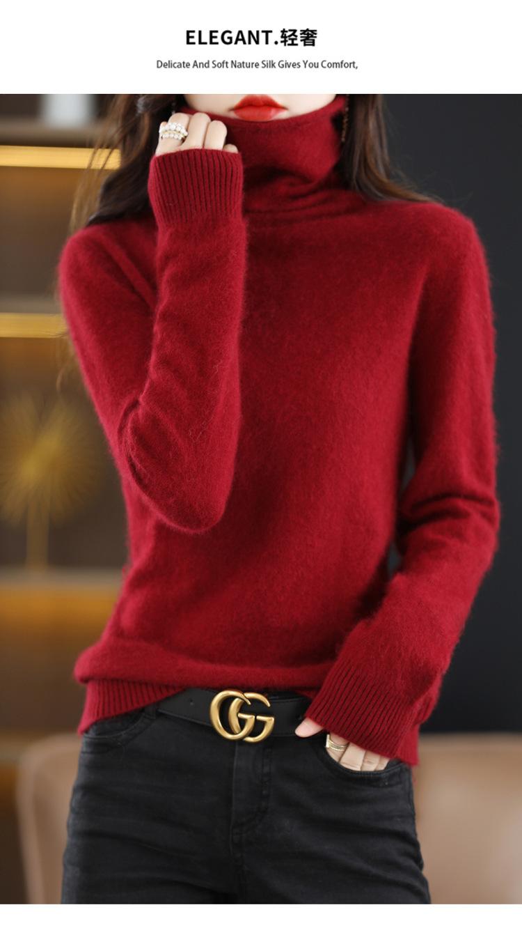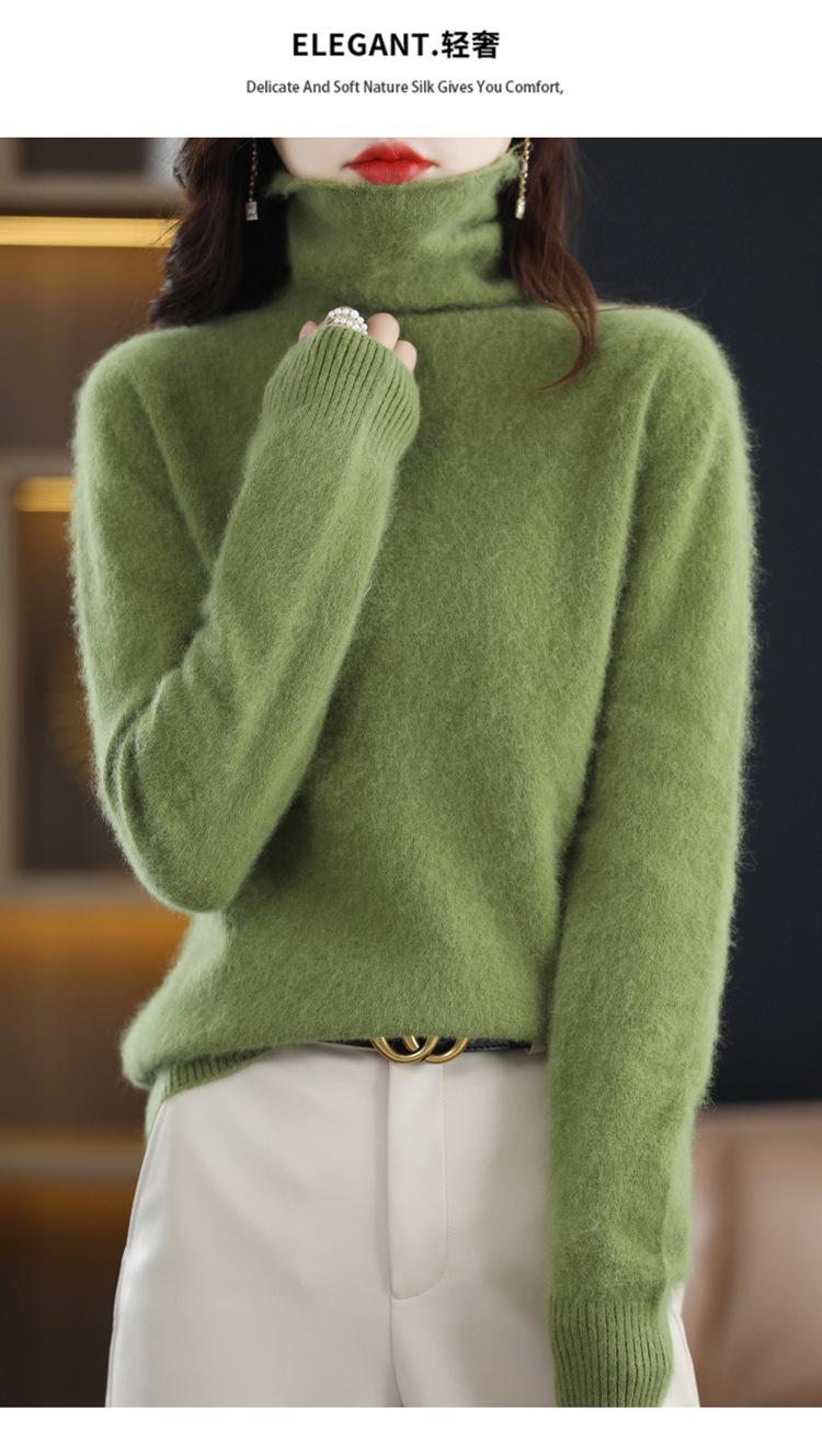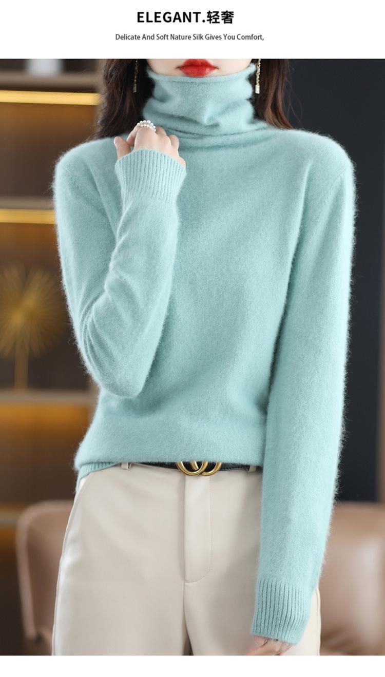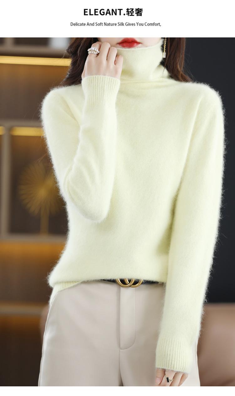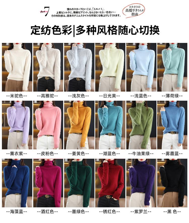 2024 outono e inverno novas senhoras soltas pilha gola alta pulôver curto vison lã malha suéter base suéter suéter