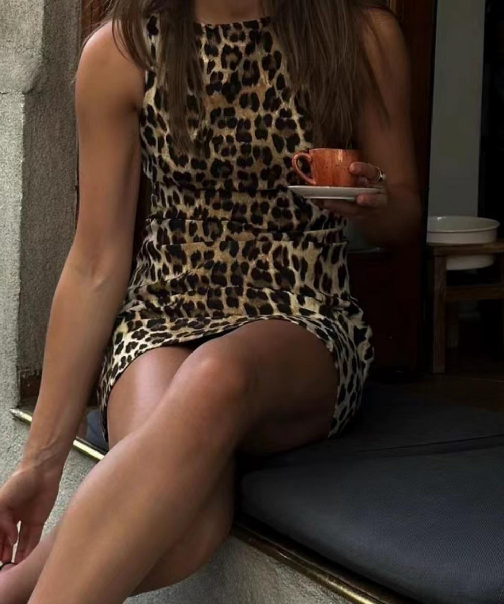 Primavera e verão europeu e americano AliExpress novas roupas femininas 2024 vestido estampa de leopardo série sexy slim