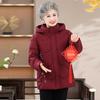 Roupas de inverno para avó idosa Casaco acolchoado de algodão Estilo ocidental Roupas para mães Inverno Casaco acolchoado de algodão para senhora idosa de comprimento médio Casaco com capuz Casaco acolchoado de algodão
