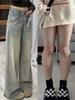 Vintage amarelo lama cor lã larga perna jeans mulheres verão cintura alta emagrecimento solto plus size dosagem calças retas