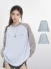 Camiseta feminina de manga comprida raglan retrô americana primavera e outono fina solta oversize base de cor contrastante top início do outono