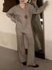 Outono e inverno de alta qualidade decote em V terno de malha feminino estilo coreano solto elegante casual top conjunto de duas peças