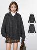 Pulôver com capuz cinza suéter de malha suéter feminino outono e inverno início do outono manga comprida solto estilo preguiçoso jaqueta espessada