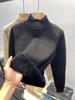 Suéter grosso com forro de lã e gola alta feminino outono e inverno 2024 novo suéter de malha de veludo de uma peça camisa de base interna de estilo ocidental