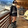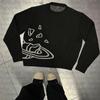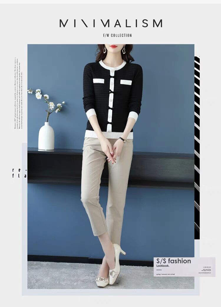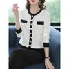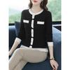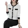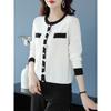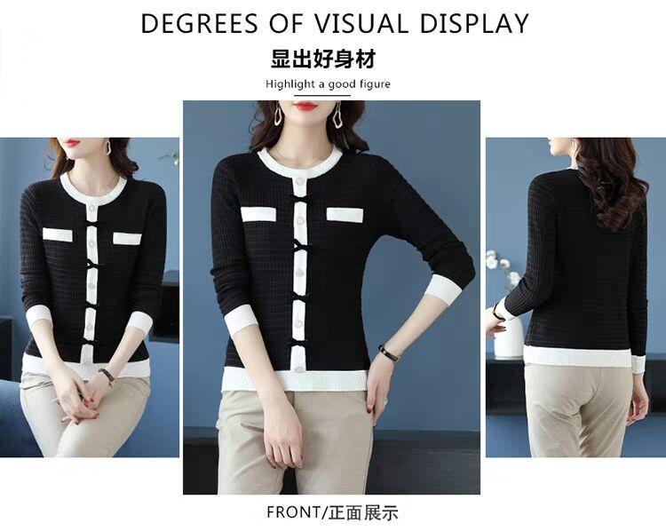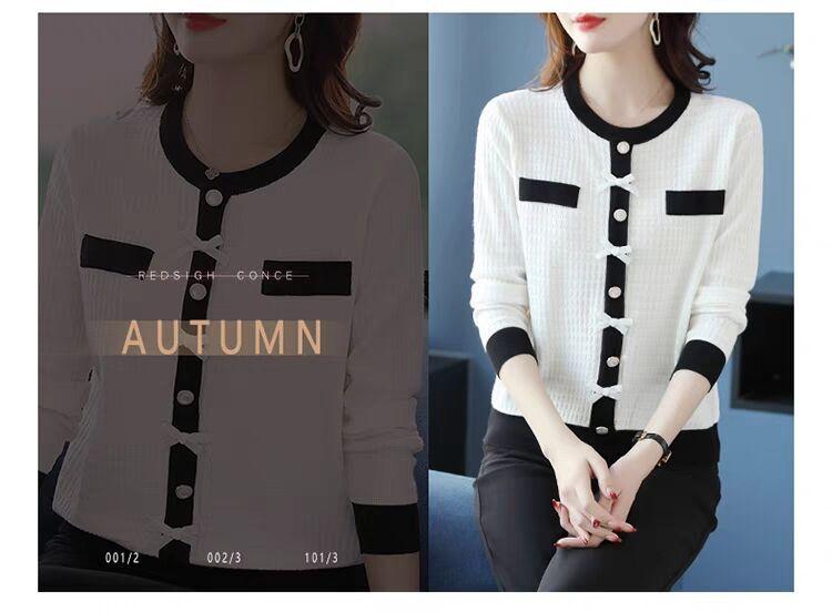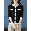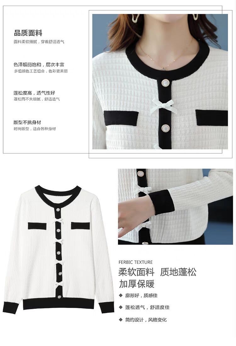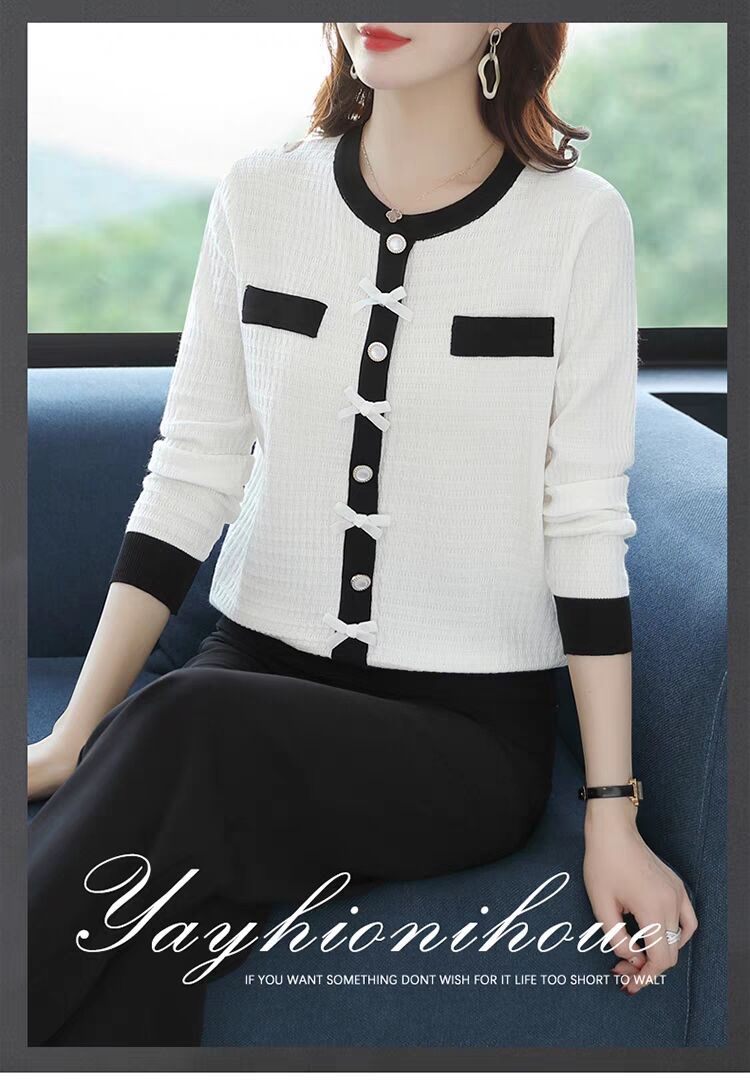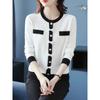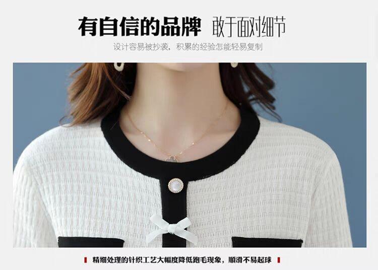 Suéter de malha estilo francês Chanel com combinação de cores, feminino, primavera e outono, nova chegada, laço, gola redonda, manga comprida, suéter de base fina