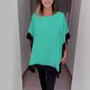 2024 Amazon cross-border supply verão novo feminino peito redondo pescoço solto manga curta manga morcego cor sólida costura