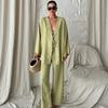 Roupas europeias e americanas Comércio exterior transfronteiriço Conjunto de roupas confortáveis e elegantes para casa Top solto com cadarço Calças largas Conjunto de duas peças