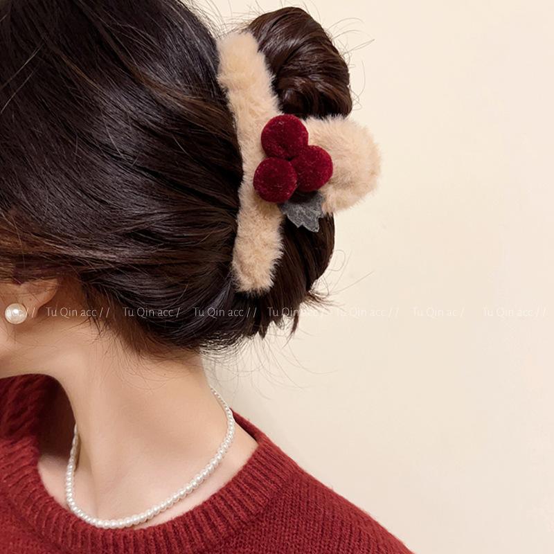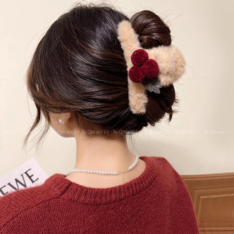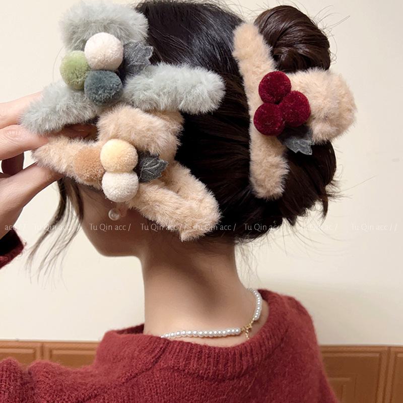 Outono e inverno Mint Mambo pelúcia Grab Clip Back Head Plate Cabelo Volume Feminino Mori Sweet Shark Clip Hairpin Headwear