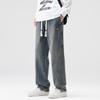 Jeans masculino estilo americano retrô de outono e inverno 2024, moda urbana solta, costura personalizada, com cintura solta e pernas largas