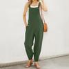 Macacão feminino de linho e algodão europeu e americano, cor sólida, bolso na cintura, calças suspensórias, leggings casuais com botões da Amazon