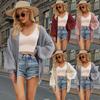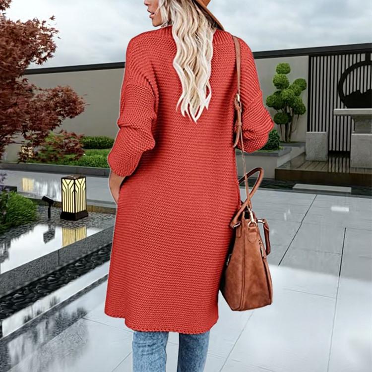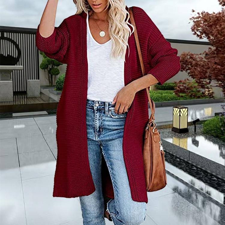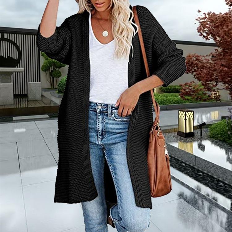 Europeu e americano AliExpress comércio exterior novo longo malha cardigan suéter casual cor sólida casaco grande tamanho suéter casaco