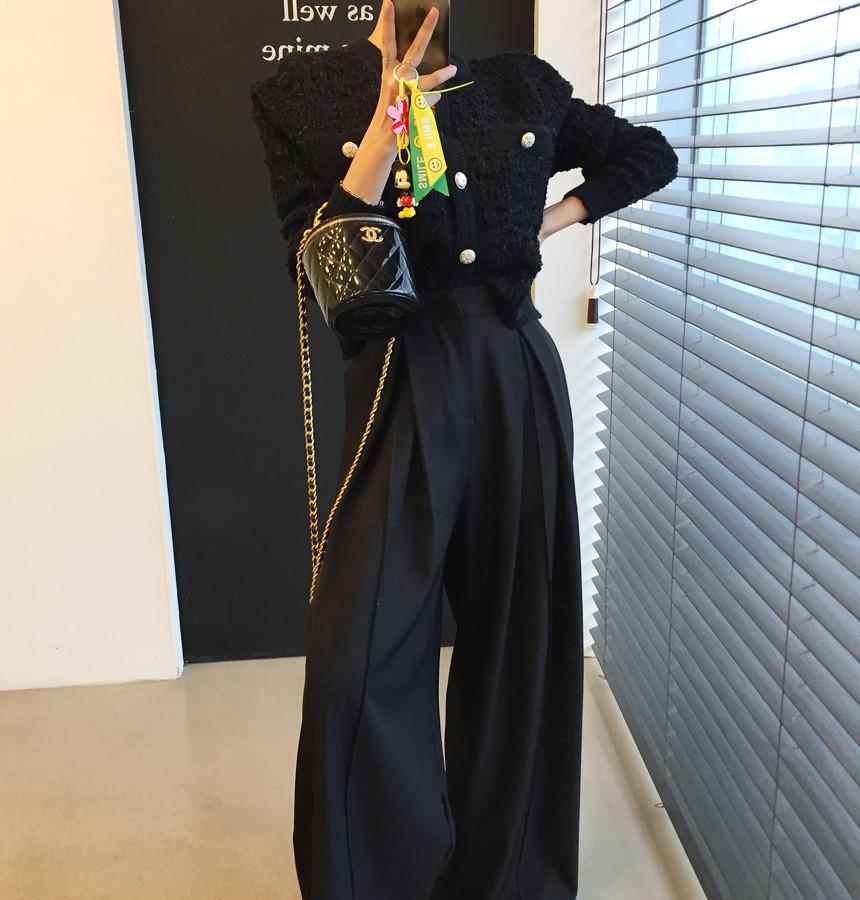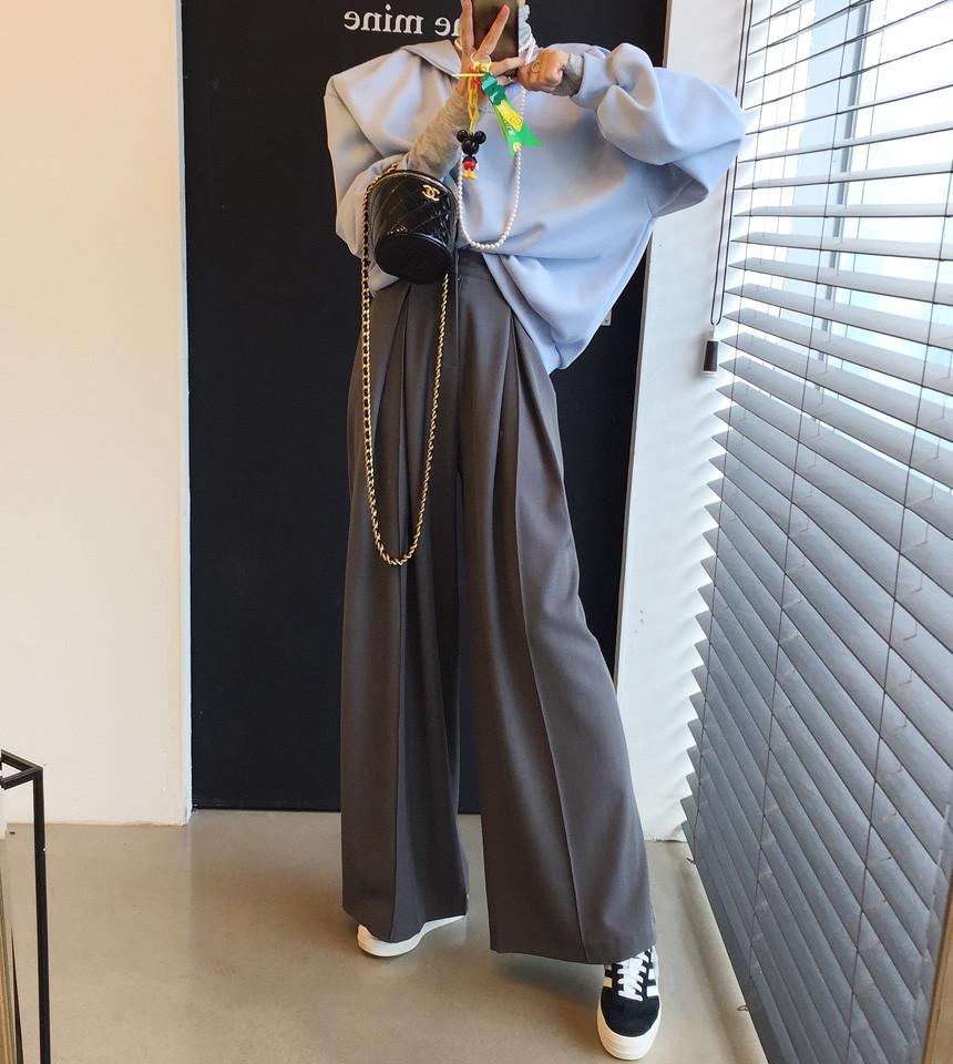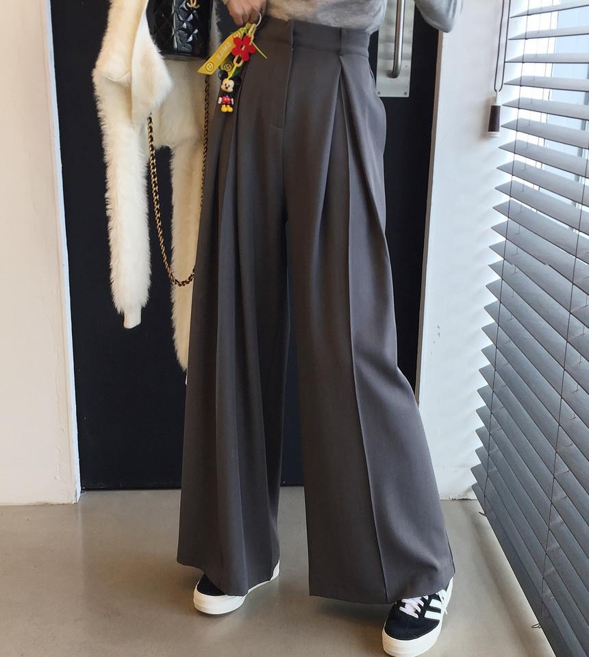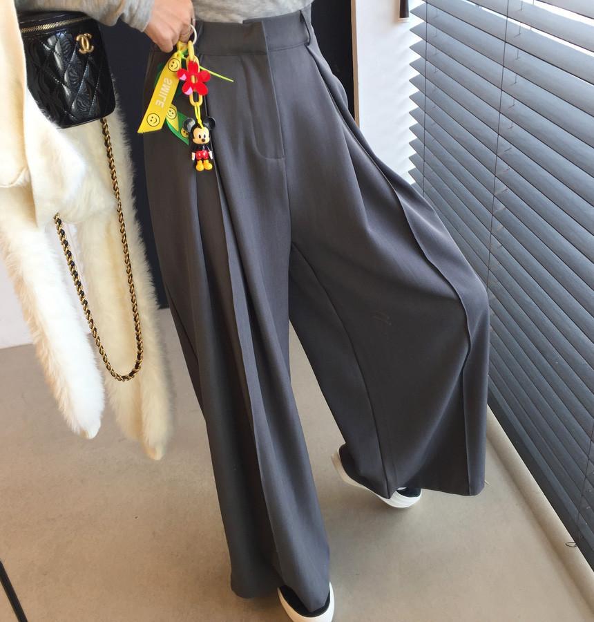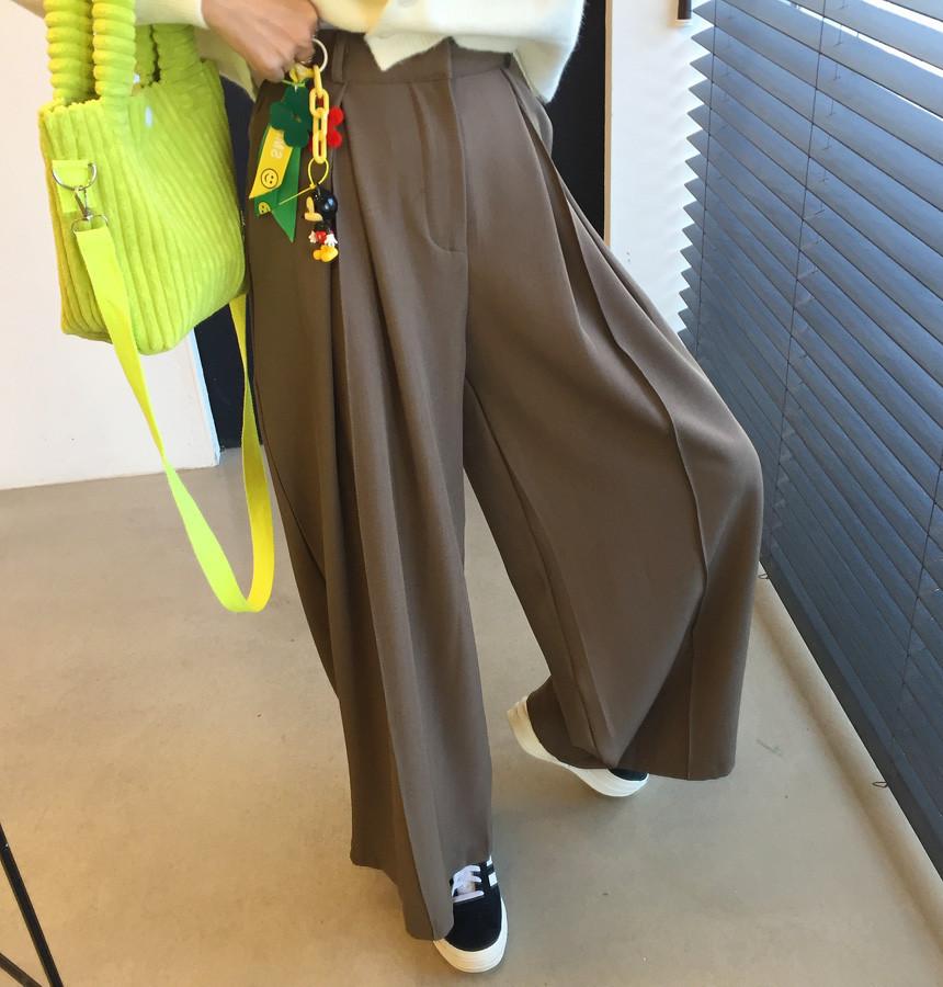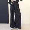 Calças de Verão Casuais de Perna Larga com Design Plissado Versátil de Cintura Alta com Sensação Retrô para Mulheres