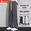 Calça casual de seda com gelo mergulhado, verão, fina, moderna, para todos os tipos de uso, tubo reto, para adolescentes, esportiva, lazer, moda, pernas largas