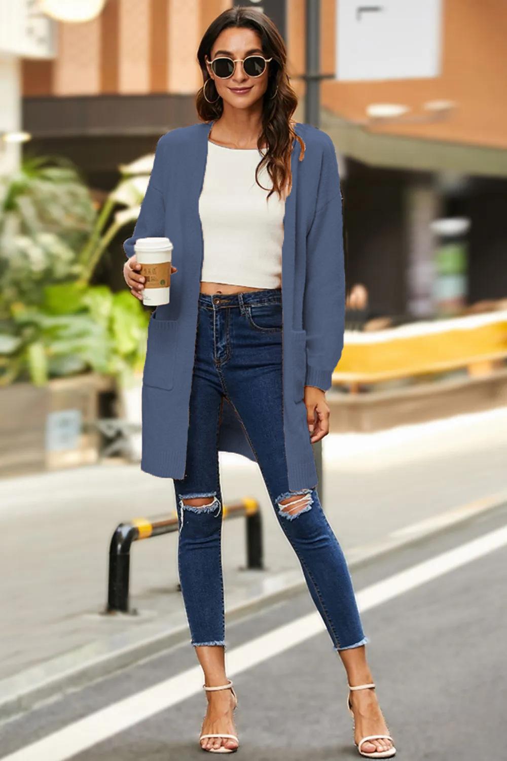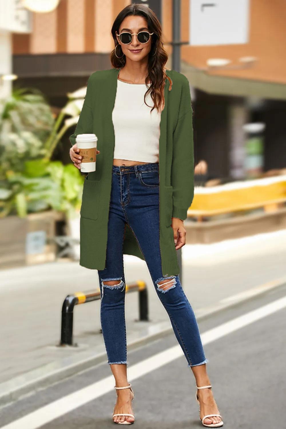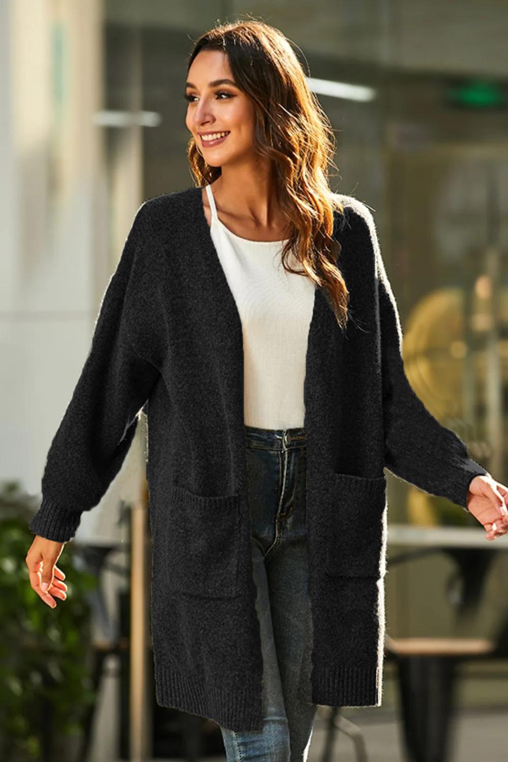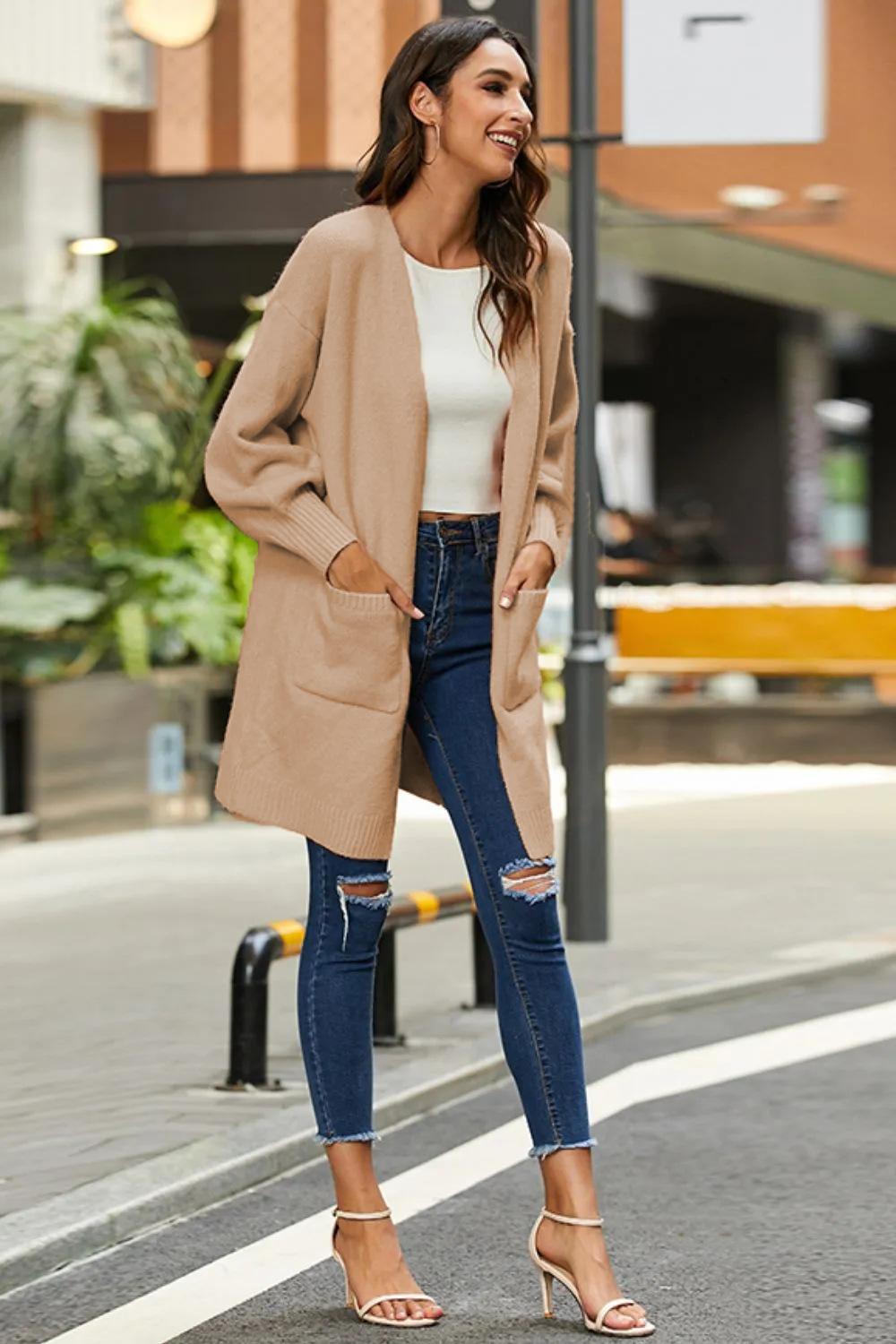 Amazon Outono e Inverno Tricotado Novo Aliexpress Suéter Solto Com Bolso Cardigan Jaqueta Suéter Feminino