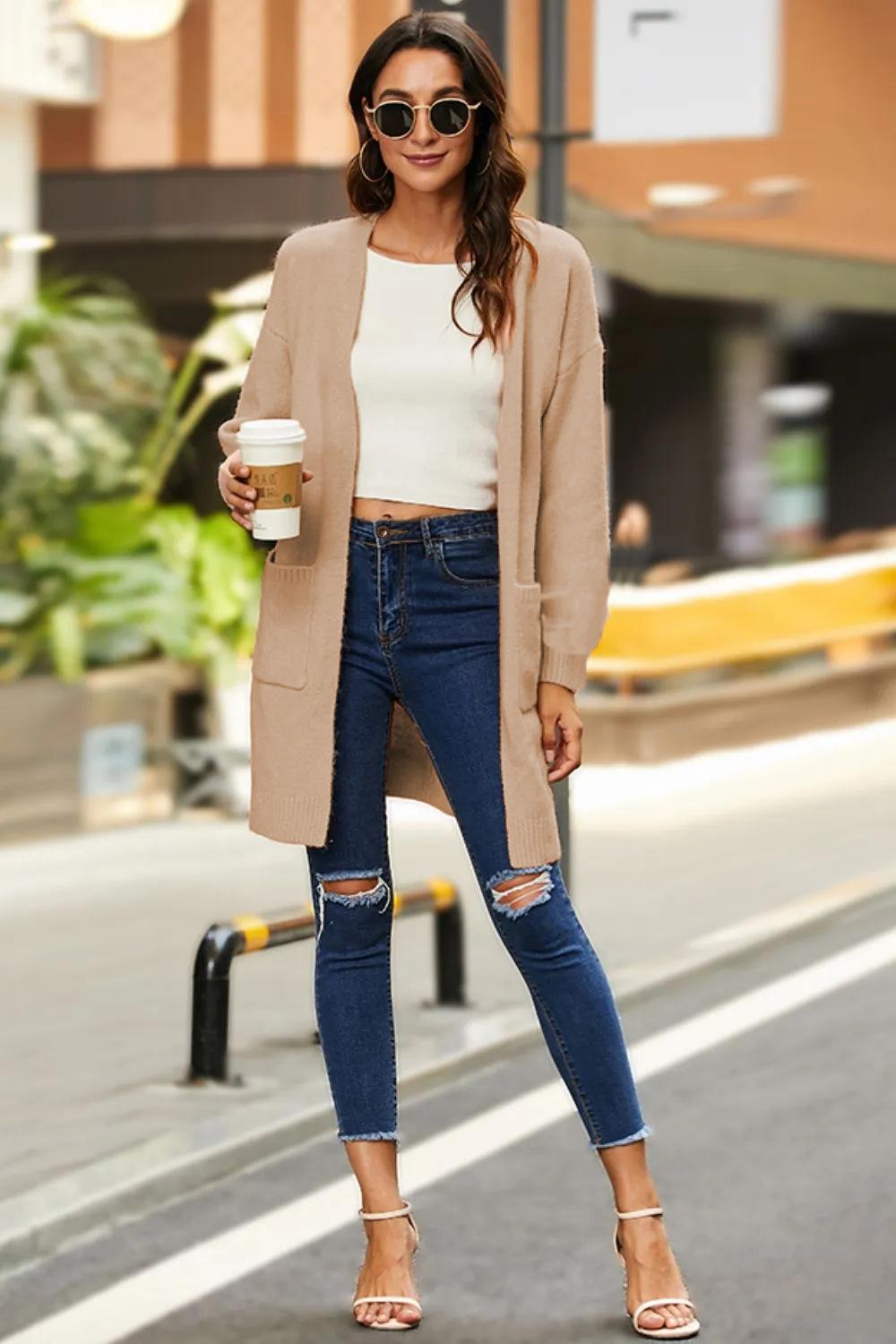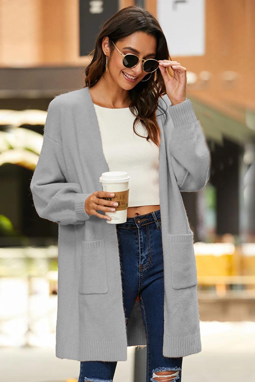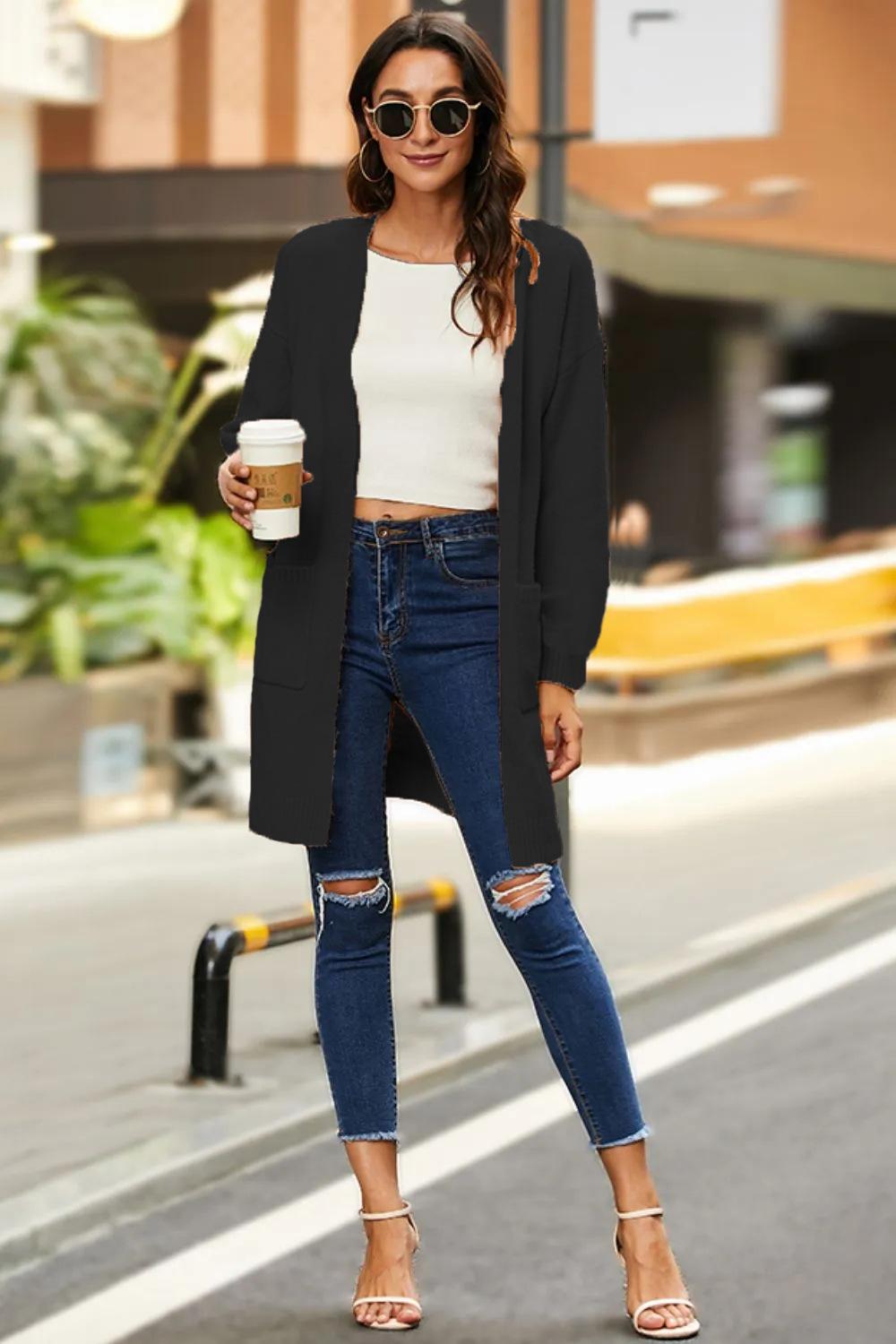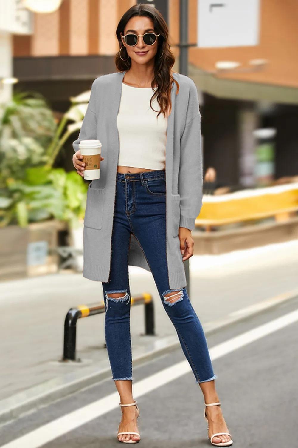 Amazon Outono e Inverno Tricotado Novo Aliexpress Suéter Solto Com Bolso Cardigan Jaqueta Suéter Feminino