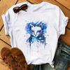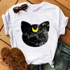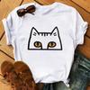 2023 primavera nova moda feminina camiseta de manga curta desenho animado menina gato estampa manga curta gola redonda