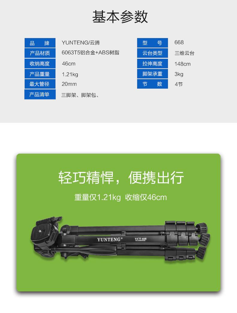Yunteng 668 tripé câmera SLR foto vídeo fotografia pesca lâmpada suporte projetor tripé ao vivo