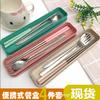 Caixa de almoço de palha de trigo colher pauzinhos garfo 4 peças conjunto proteção ambiental estudante pauzinhos colher portátil aço inoxidável conjunto de talheres presente