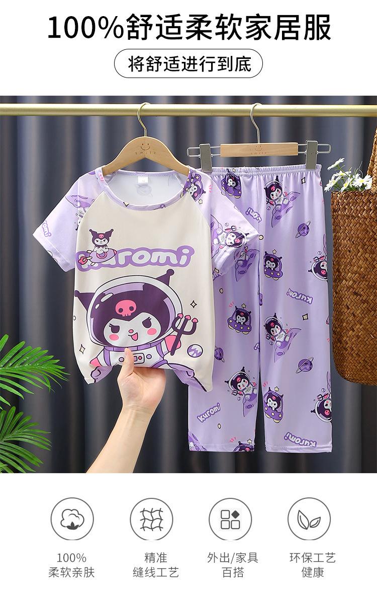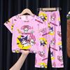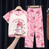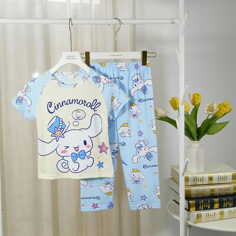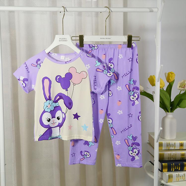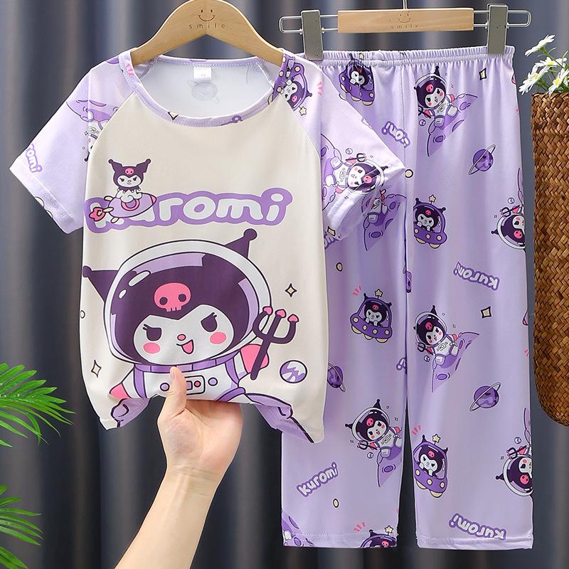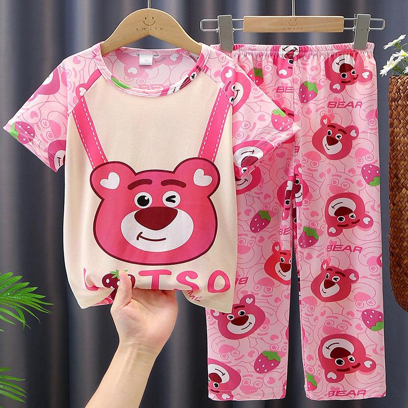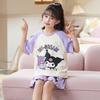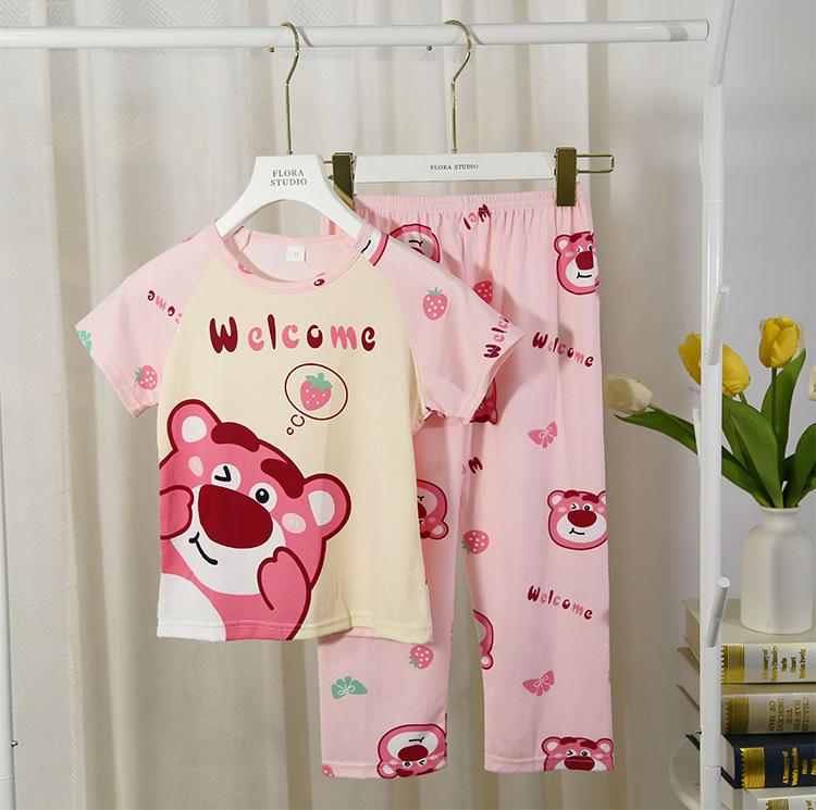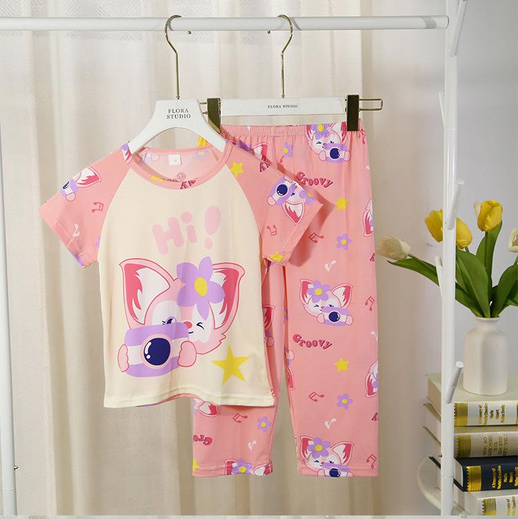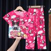 2024 Novas roupas de verão para meninas, calças de manga curta para crianças, pijamas grandes para meninas, terno fino