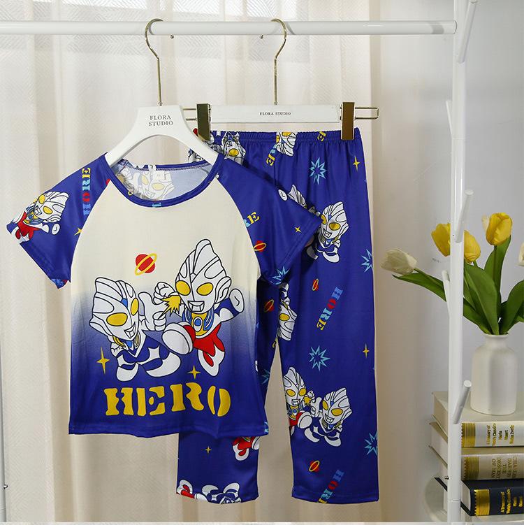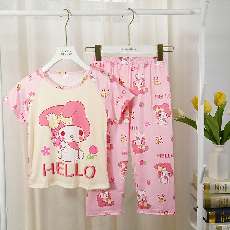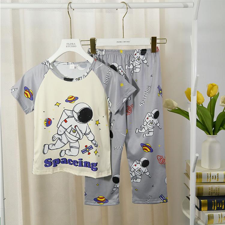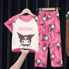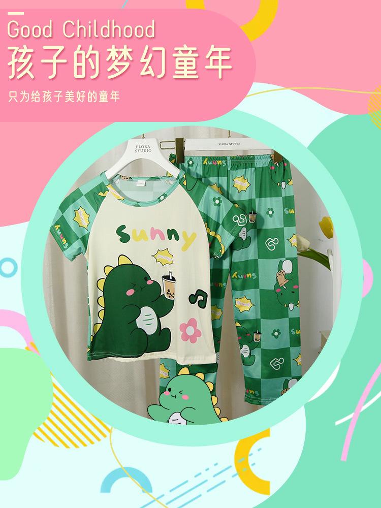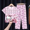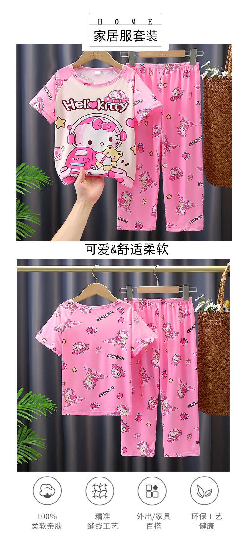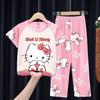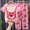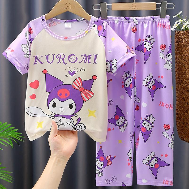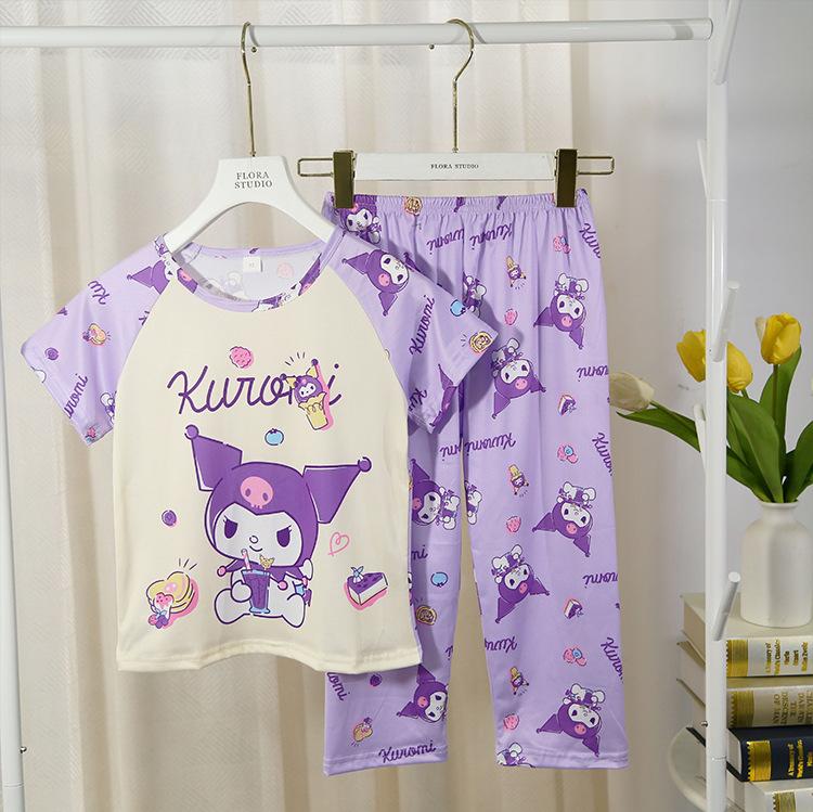 2024 Novas roupas de verão para meninas, calças de manga curta para crianças, pijamas grandes para meninas, terno fino