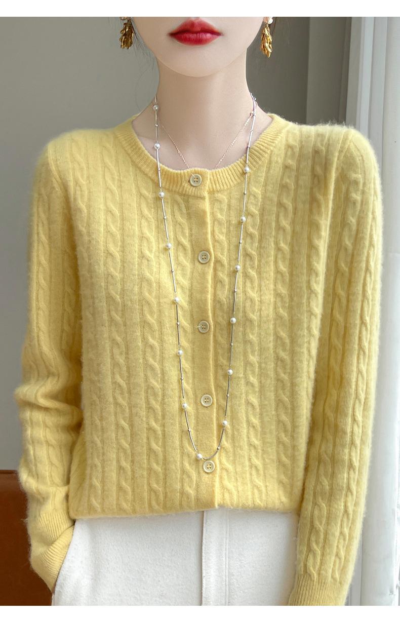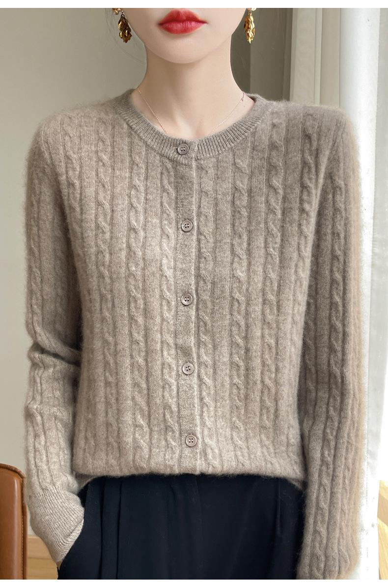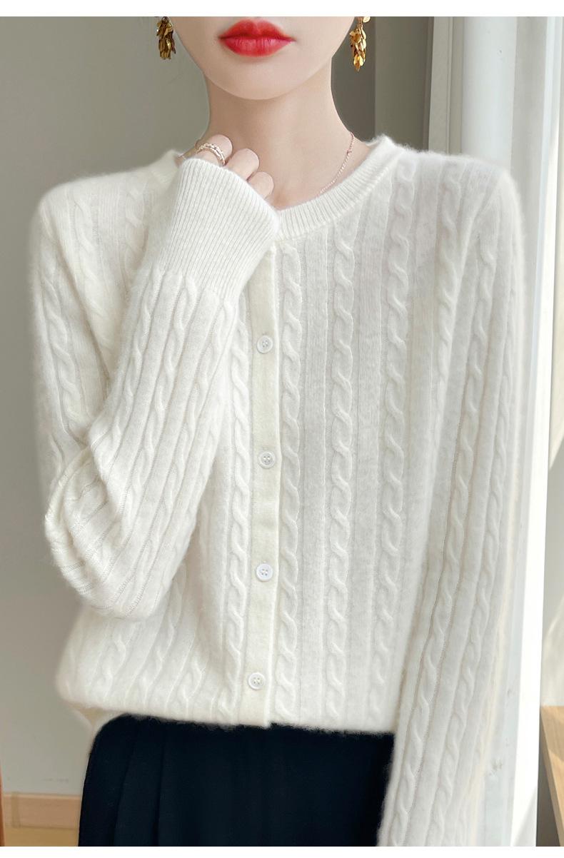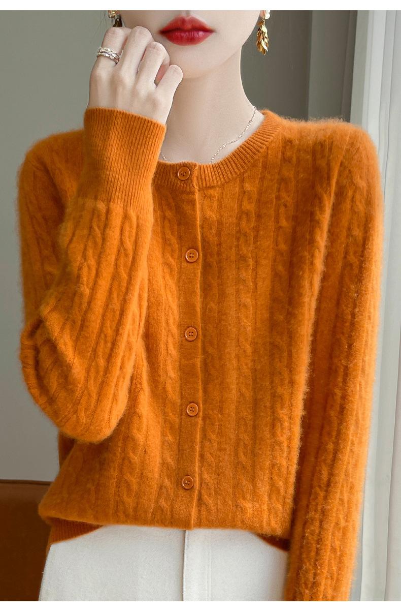 2024 Outono e Inverno Explosions Andy Velvet Vintage Twist Knitted Sweater Cardigan Jacket Suéter Feminino Crewneck All-match Top