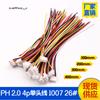 Cabo terminal PH2,0 4p chicote de fios terminais 2,0mm 4p fio eletrônico cabeça simples vermelho preto branco amarelo 1007 26awg