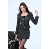Tiro real em estoque gola quadrada cintura justa casaco desfiado saia terno de duas peças