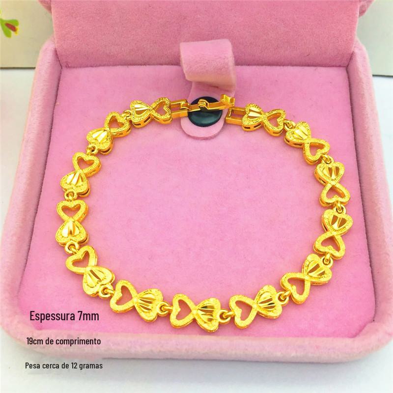 A corrente mudará de cor e desbotará após usá-la por alguns dias. Não há muitos fabricantes que conseguem atingir uma cor dourada espessa.
