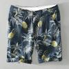 Código Quebrado L8109 Calça Reta Masculina Casual Estampa Havaiana Shorts de Linho Respirável Roupa de Férias para Praia