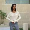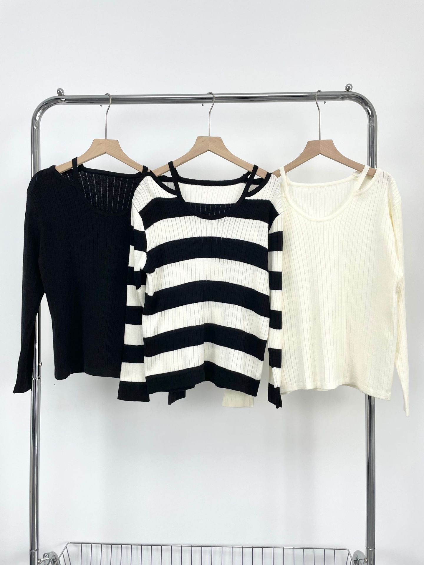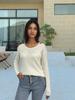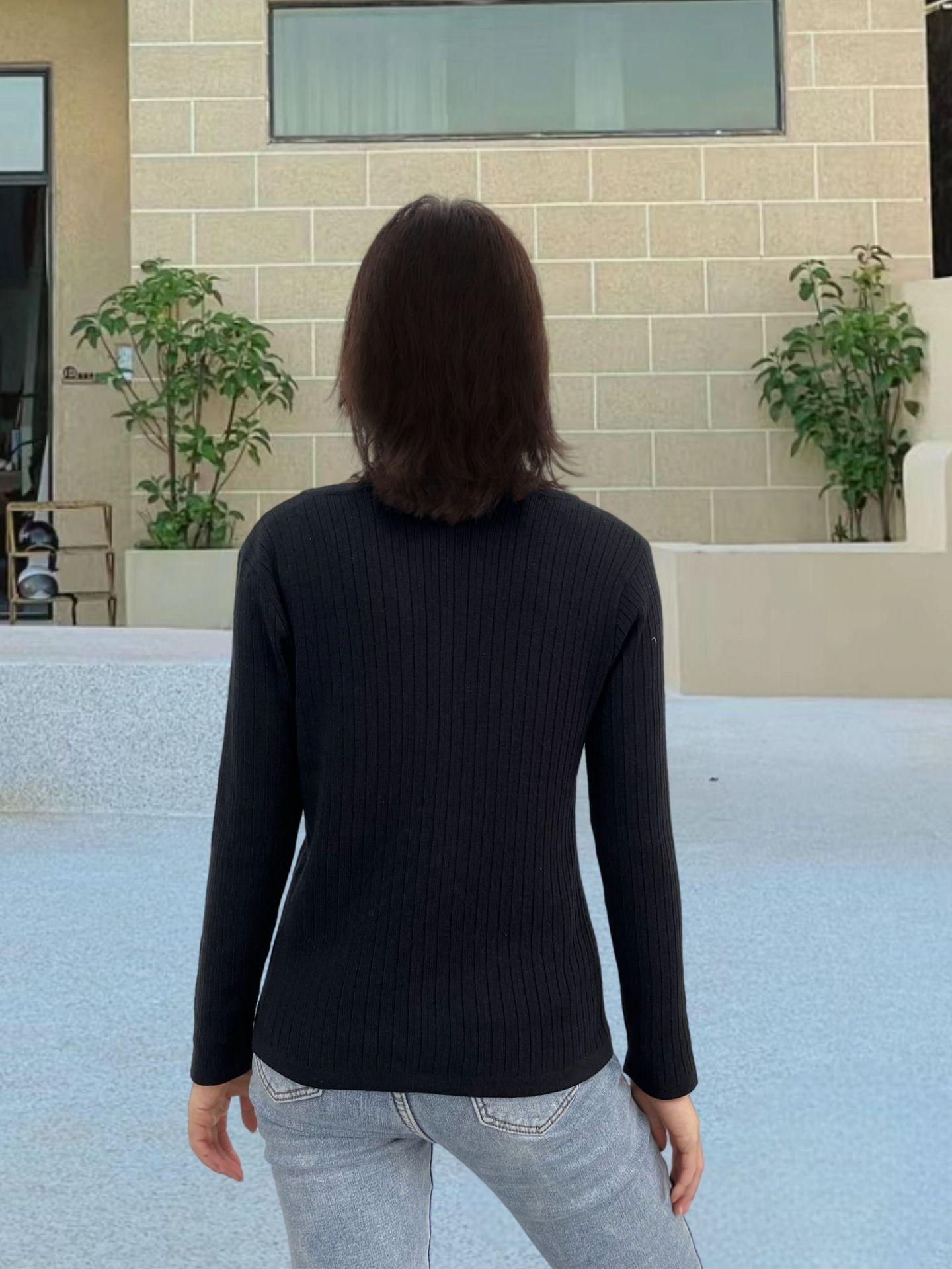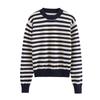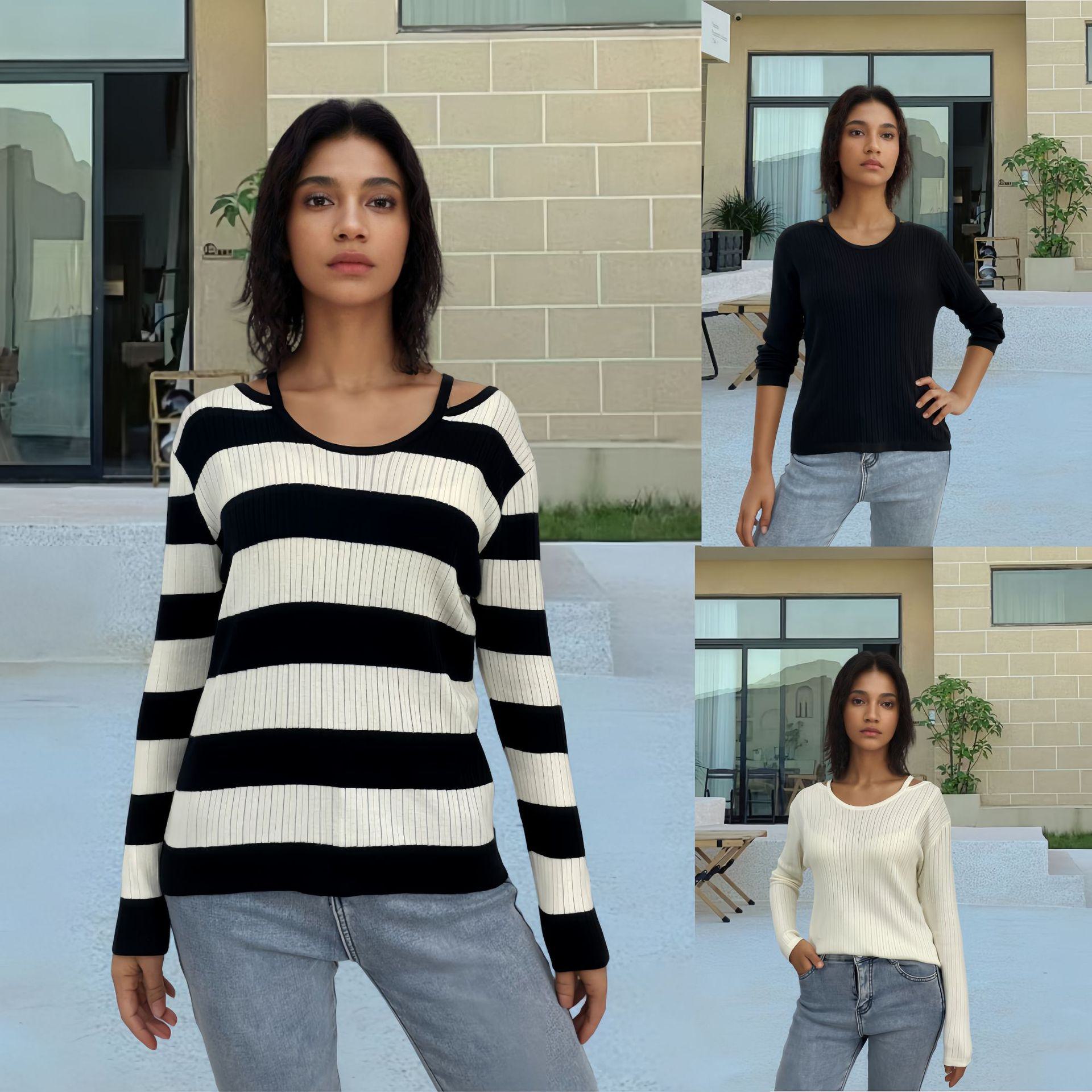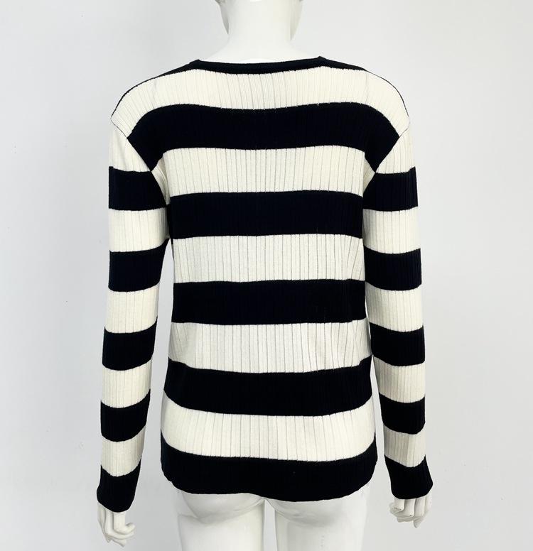 AliExpress Primavera e Outono Malha Nova Europeia e Americana Gola Redonda Feminina Manga Longa Camisa de Malha Slim-fit Listrado Base Camisa para Mulheres