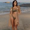 Biquíni Europeu e Americano Novo de 2025 para Férias na Praia, Tricotado Vazado, Praia Sexy, Cardigan, Blusa Jaqueta Protetora Solar para Mulheres