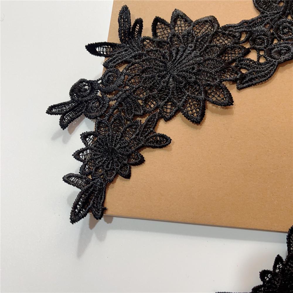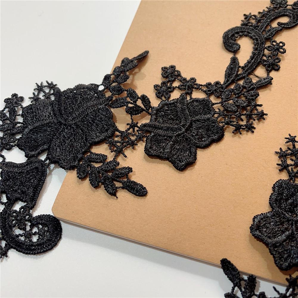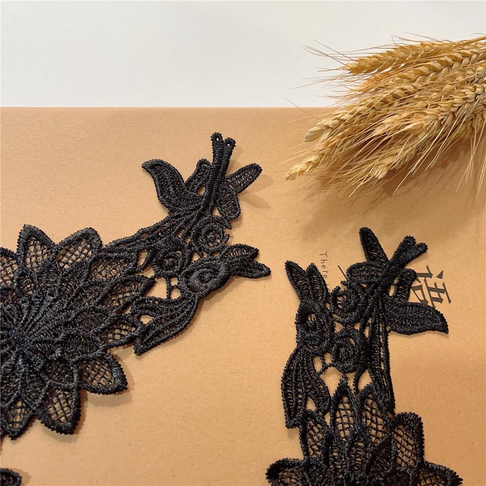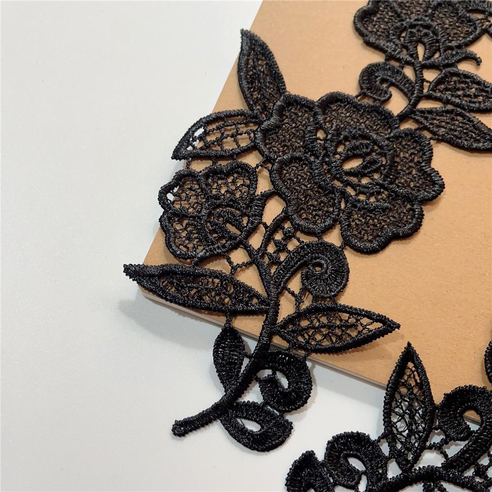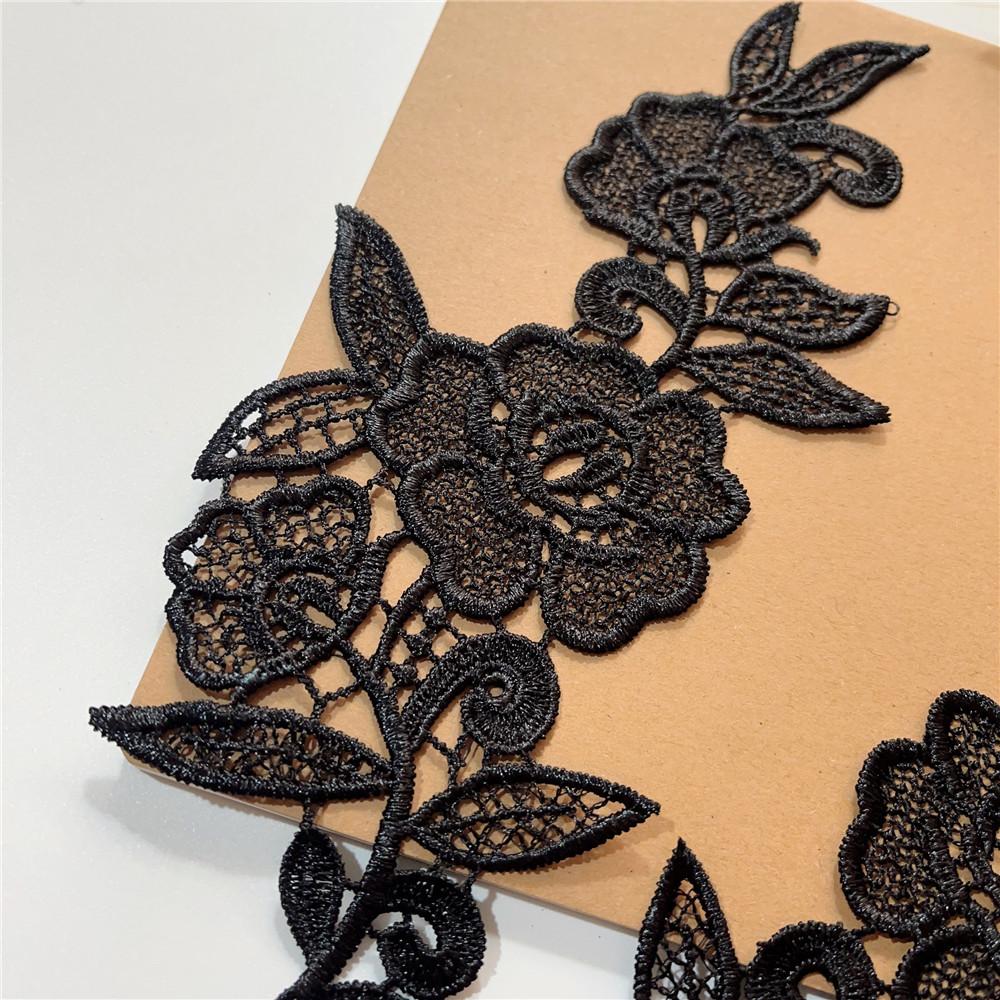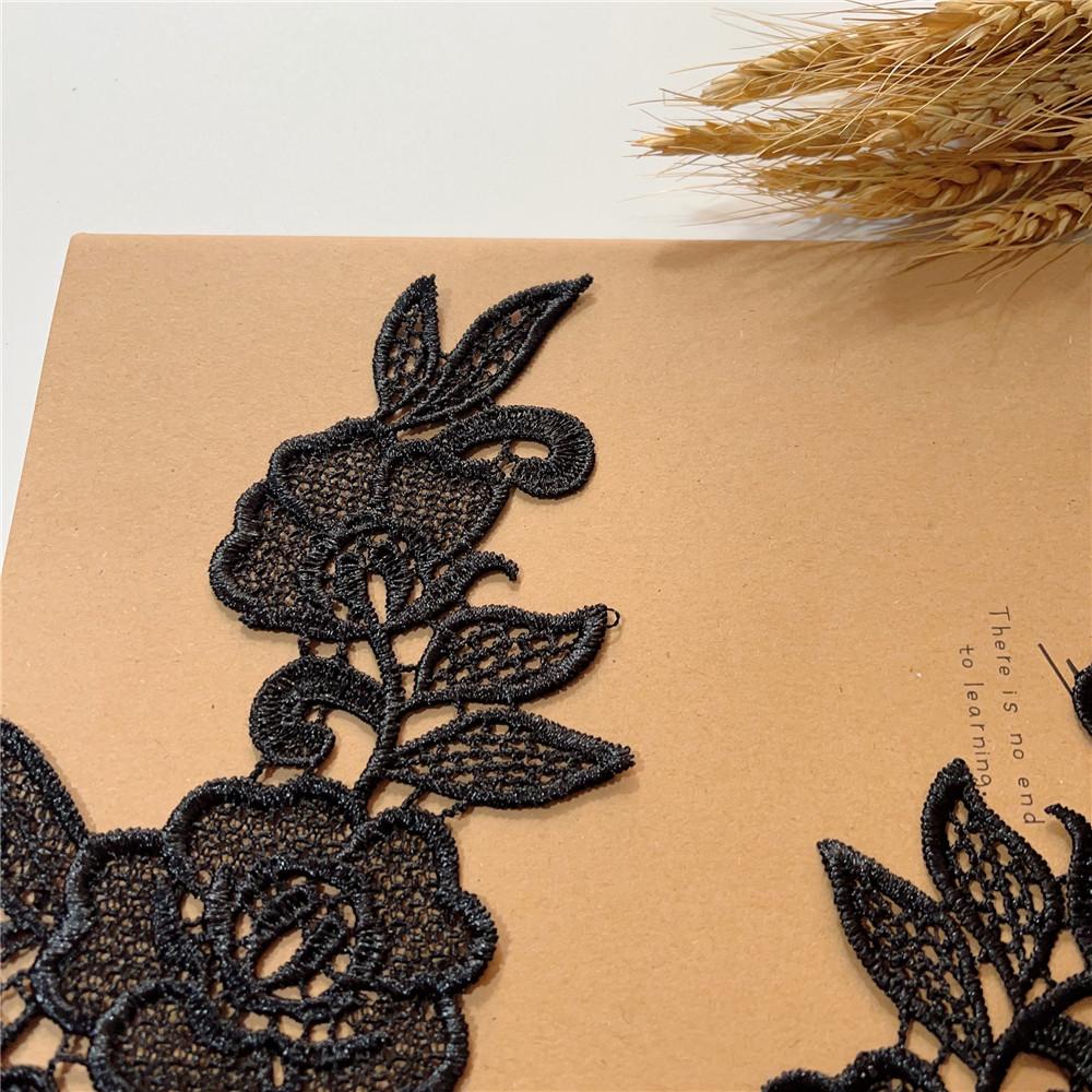 Adesivo de pano de renda solúvel em água preta Flor oca bordado Acessórios de flores Handmade DIY Vestido de noiva Headwear Material de decoração