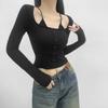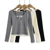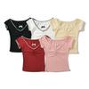 2024 Verão Novo Estilo Doce e Quente Renda Manga Curta Camiseta Feminina Estilo Americano Falso Duas Peças Slim-fit Top com Laço