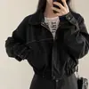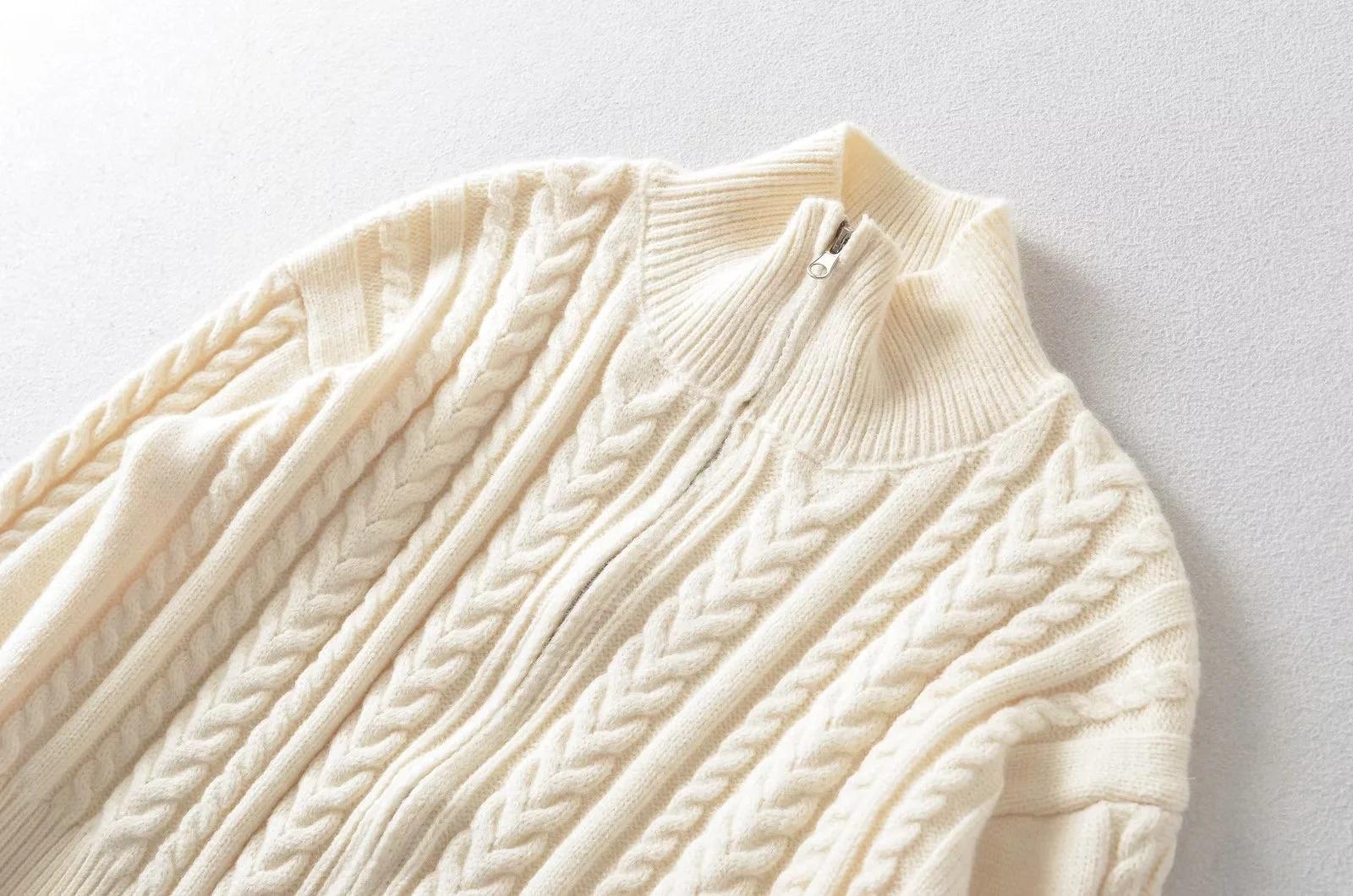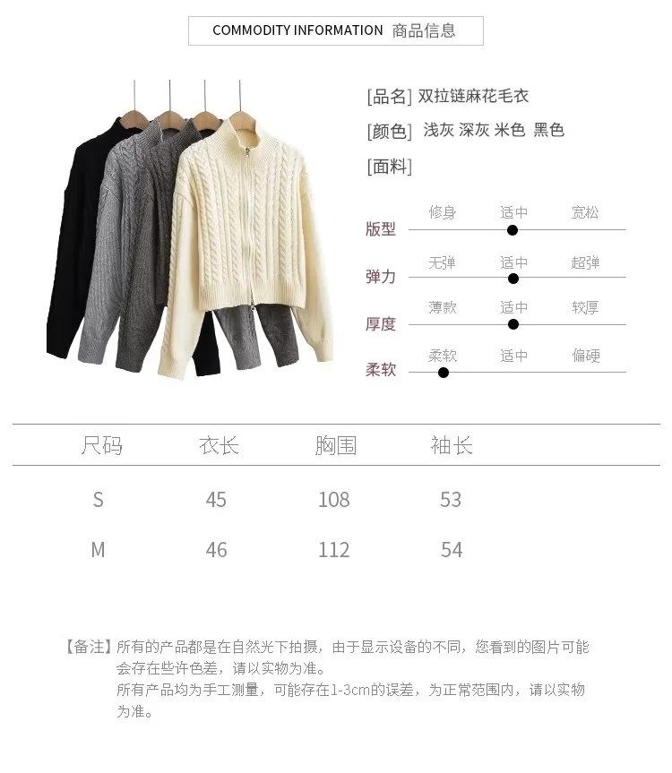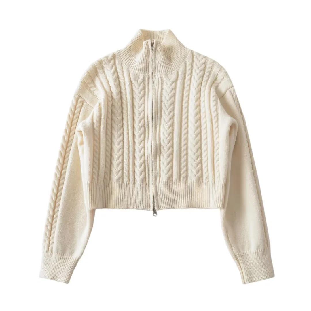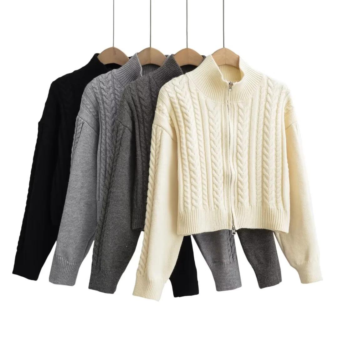 Cardigan americano retrô com torção para mulheres 2023 novo estilo preppy com zíper duplo redutor de idade casaco atacado