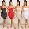 Amazon deseja nova moda em torno do pescoço sexy contas sete manga vestido de chiffon 9935