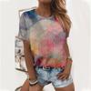Nova Amazon cross-border comércio exterior manga curta verão feminino impressão personalizada impressão digital gola redonda camiseta