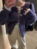 Outono e inverno novo gola redonda retro torção malha cardigan feminino solto preguiçoso moda casual macio cera suéter casaco curto