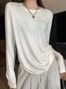 Camiseta branca de manga comprida feminina outono e inverno 2024 nova gola redonda macia e encerada básica simples e combinando cor sólida parte de baixo