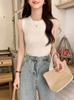 Chaleco pequeño de color liso de estilo suave para mujer, de verano, de hilo hilado en el núcleo, diseño fino, sin mangas, ajustado, corto.