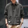 Outono estilo americano retro meia zíper gola polo camisa masculina solta moda marca secagem rápida carga roupas trabalho pulôver jaqueta