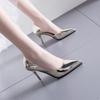 Sapatos de trabalho para banquetes, sapatos de salto alto de cor sólida, camada única, femininos, verão 2024, novo estilo, salto fino, sexy, salto lateral, bico fino, sapatos femininos