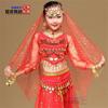 Traje de dança indiana infantil Dança do ventre infantil Top de manga comprida Colar Brincos Pulseira Flor dourada Moeda de perigo Fita