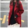 Casaco de lã Red Hepburn feminino 2024 inverno novo estilo coreano solto comprimento médio comprimento joelho casaco engrossado