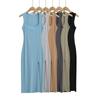 Roupas femininas europeias e americanas, novas, gola quadrada, cor sólida, sexy, saia dividida, comprimento médio, atacado