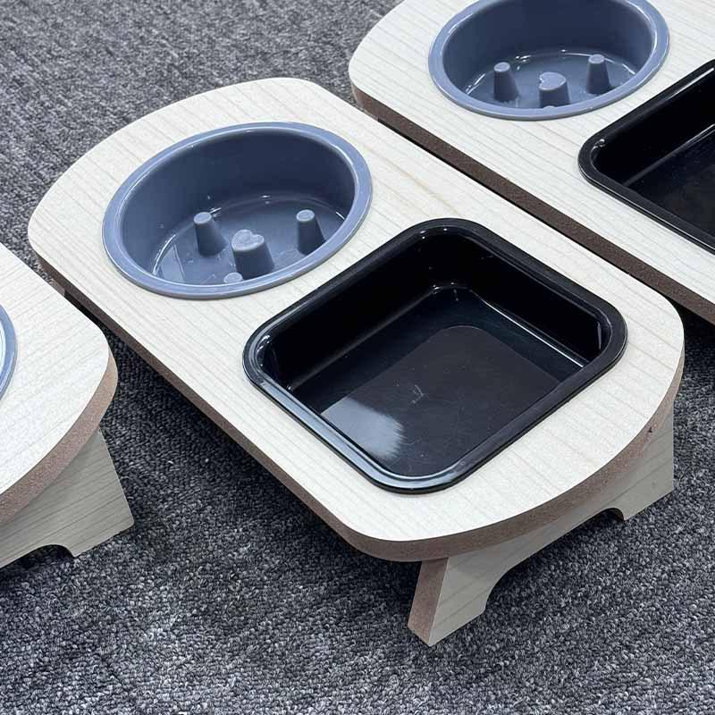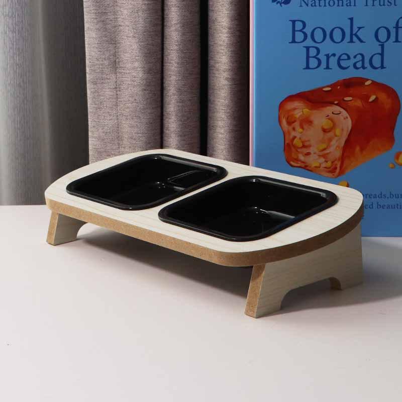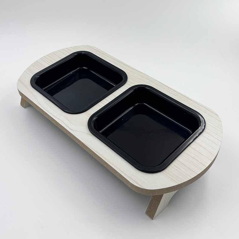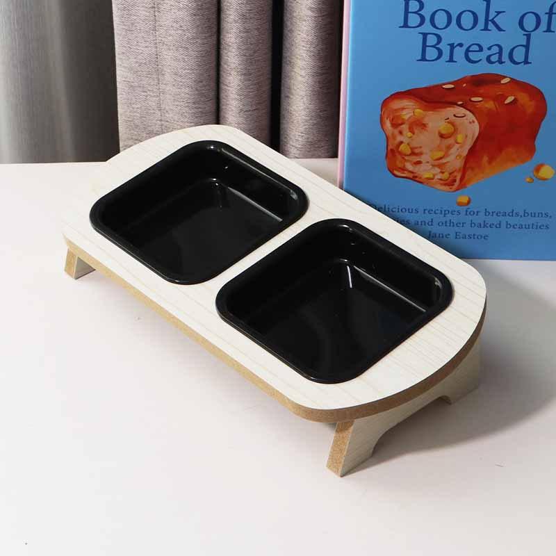 2 bowls square bowl suit [wooden frame +2 Drop-resistant plastic bowls]]