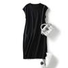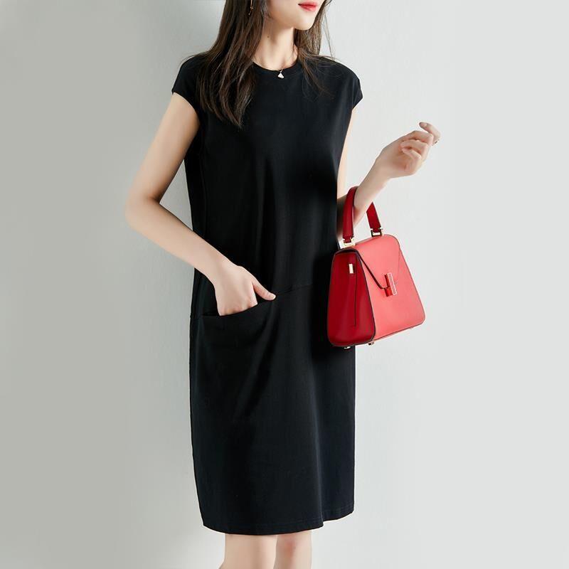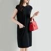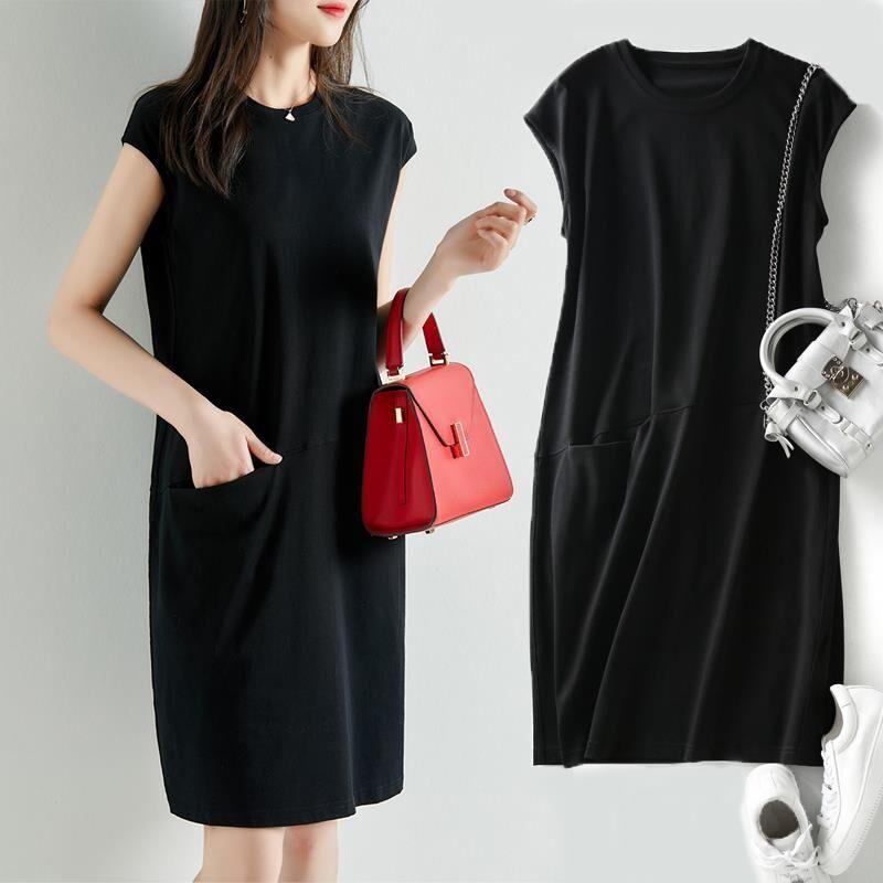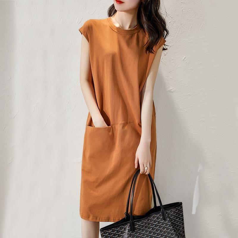 Verão novo popular solto emagrecimento cor sólida camiseta vestido feminino estilo coreano comprimento médio saia de fada