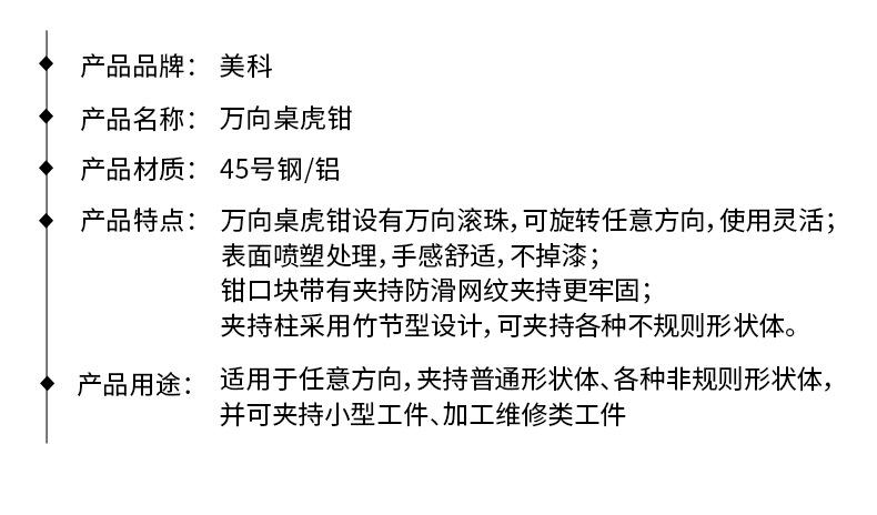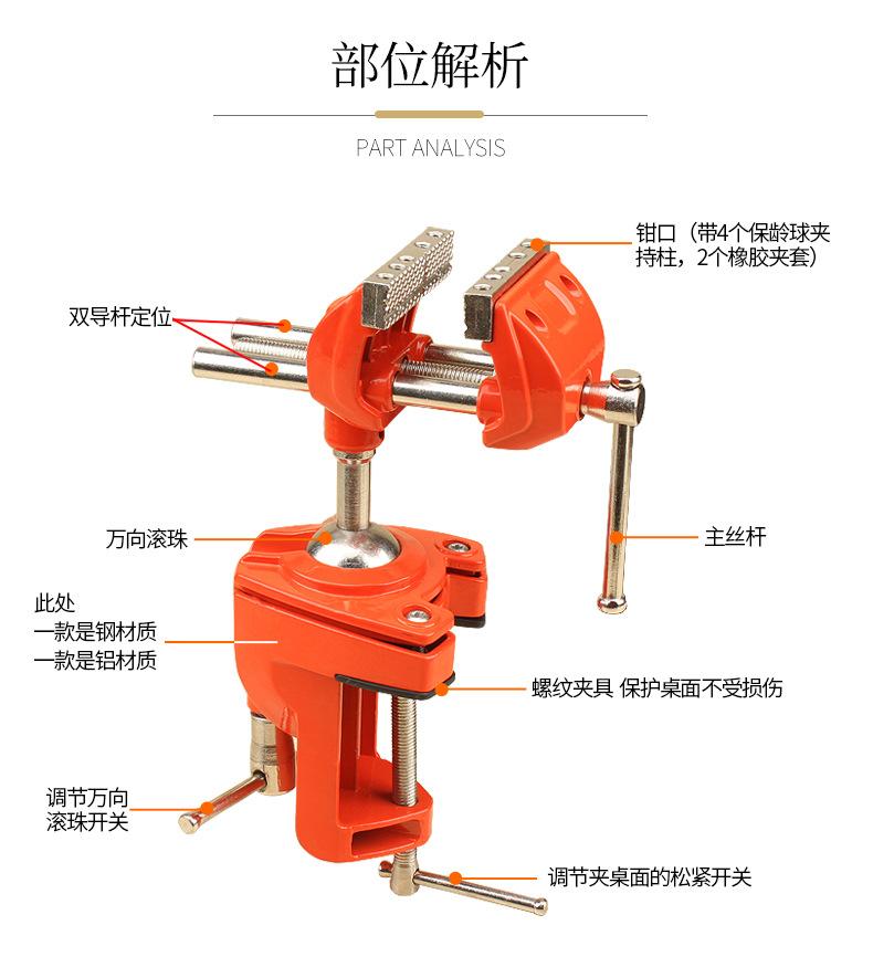 All steel universal table vise with clamping accessories, Aluminum universal table vise (carbon steel jaws) co...
