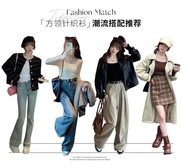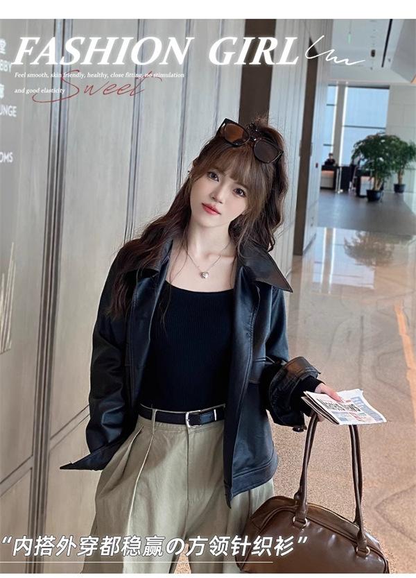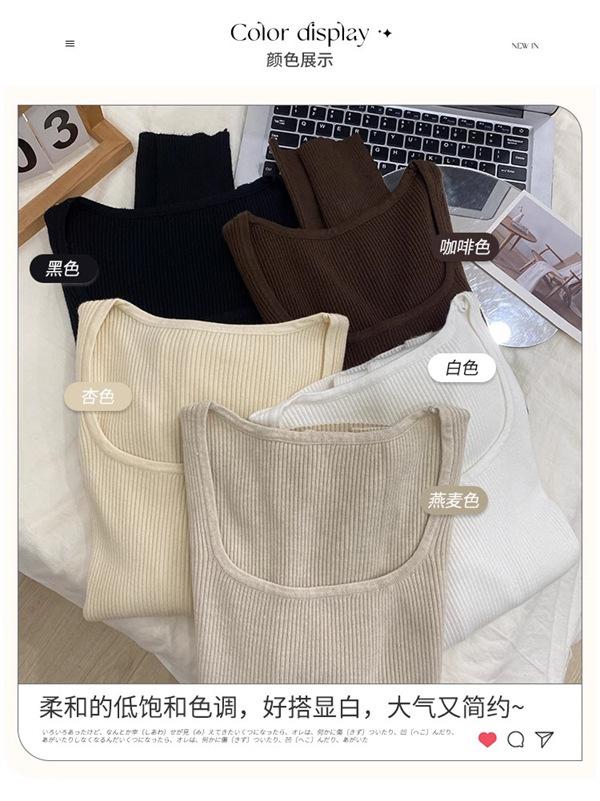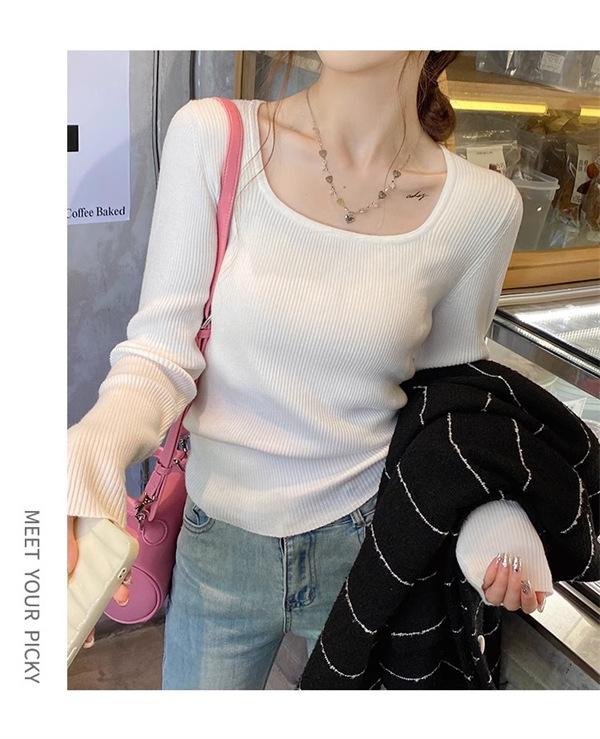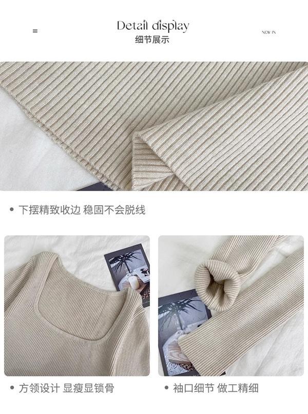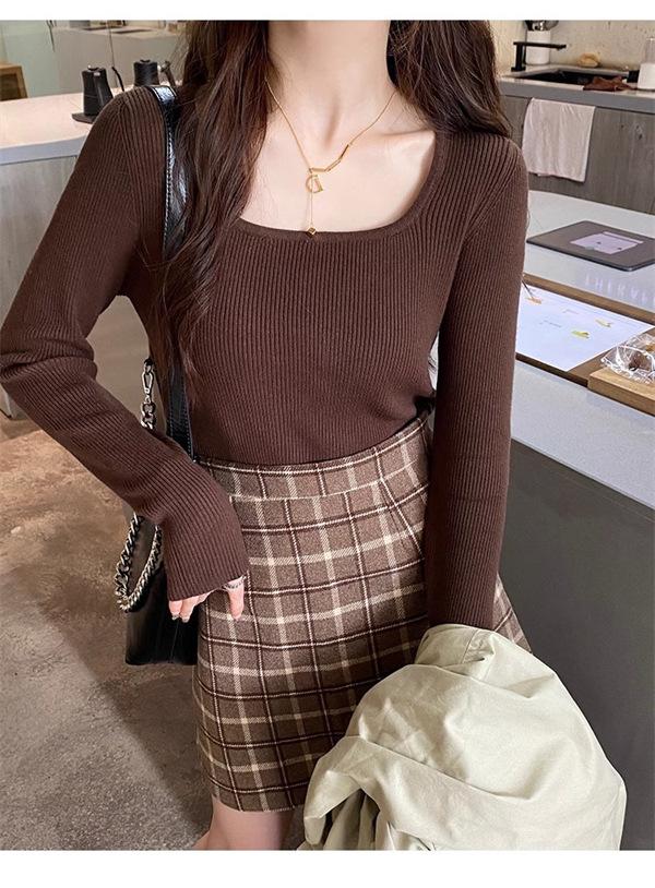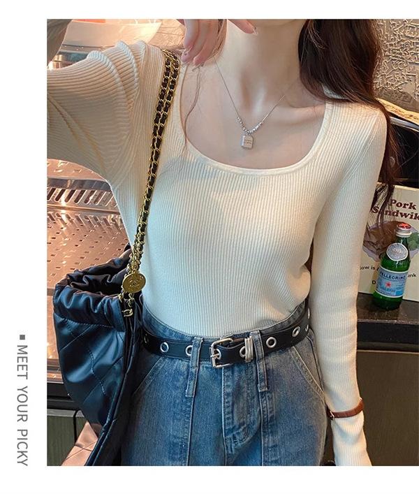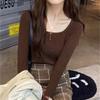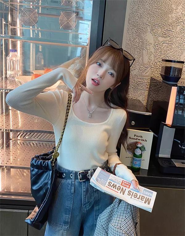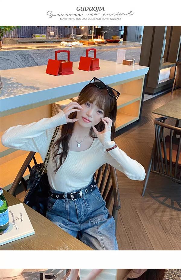 Camiseta Preta de Base com Decote Quadrado para Mulheres, Top de Tricô de Outono e Inverno, Suéter Slim-Fit de Manga Longa 2025, Elegante e Estiloso