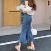 Saia feminina com babados e cauda de peixe, nova saia jeans de cintura alta com fenda elegante e elástica de comprimento médio